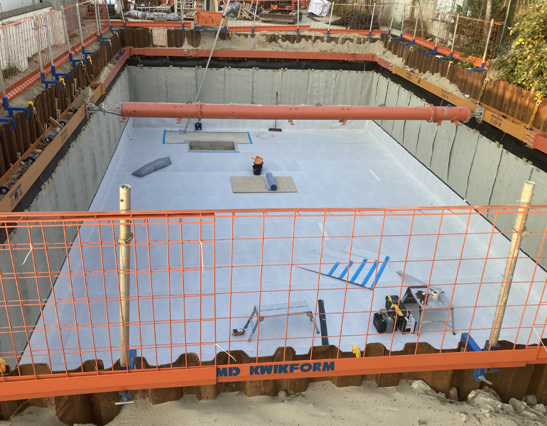 Full waterproofing to external slab & retaining walls incorporating Pre-applied Type A barriers and drainage. Project is ongoing.